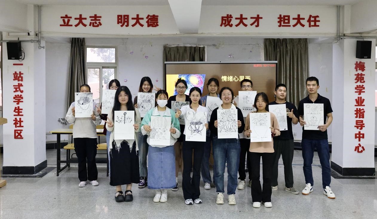 为落实《陕西省教育厅办公室关于开展我省首个全国学生心理健康宣传教育月活动的通知》要求,进一步推进大学生心理育人工作,提升广大学生心理健康素养。5月29日,华体会(中国)首届艺术疗愈文化节之“情绪心理画-释放情绪 勾画期望”艺术疗愈活动在梅苑“一站式”学生社区举办,此次活动通过“线描”这一非语言表达艺术,带领学生在线条的世界里感受情绪、勾画期望,接受变化、安顿内心。