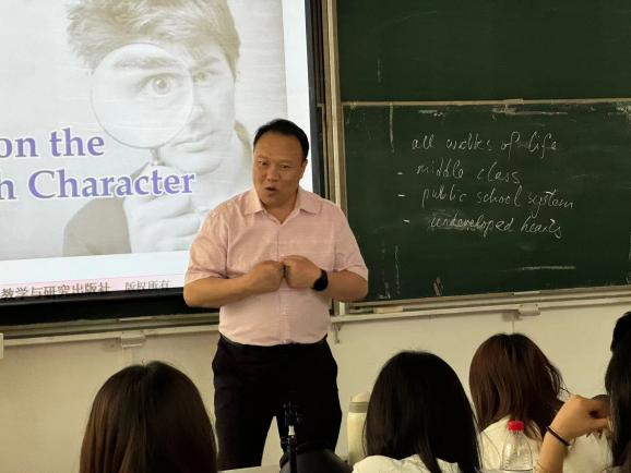 为充分发挥名师示范、引领作用,搭建教师相互交流学习平台,2024年6月11日上午,华体会(中国)在2号教学楼101教室成功举办了“教在明德——第三期教师教学公开示范课”。本次活动由教师发展中心组织,邀请语言文化传播学院王卫强教授进行公开示范课,学校新进教师及青年教师约30人参加了本次课堂示范观摩活动。