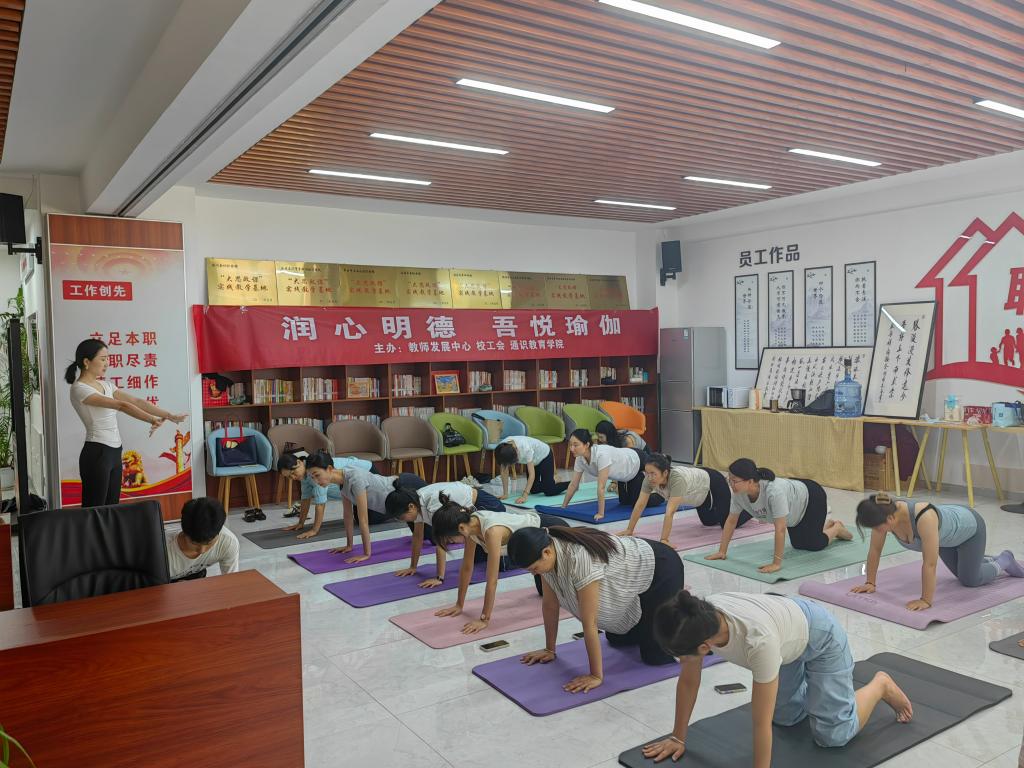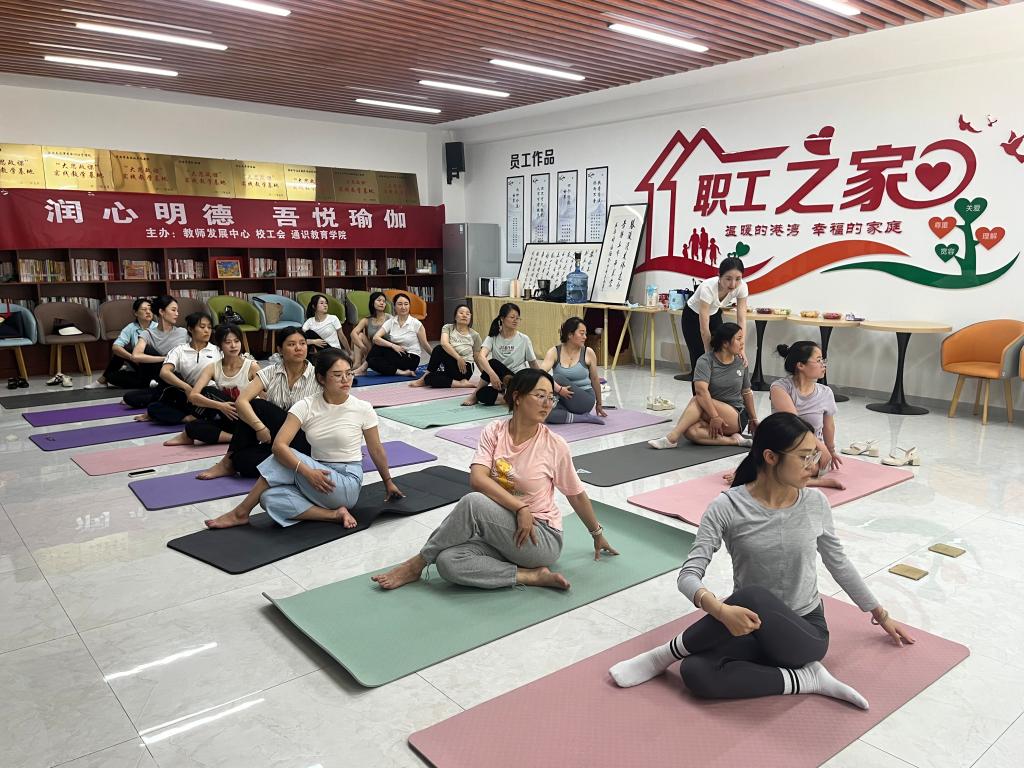 为进一步促进学校教职工身心健康,丰富教职工业余文化生活,华体会(中国)教师发展中心联合校工会、通识教育学院,组织开展以“润心明德,吾悦瑜伽”为主题的午间瑜伽课程培训活动,活动邀请通识教育学院祝新蕊老师授课,第一堂课于6月13日顺利开课,来自各单位约20余名教职工参加了首堂课程学习。