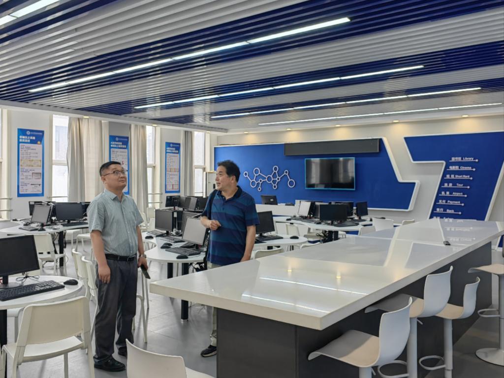 调研期间,在西安文理学院经济管理学院闫荣国院长的陪同下,郭鹏院长一行参观了该学院的实训室、图书馆等教学设施,实地考察教学环境和办学条件,对西安文理学院的教学设施和教学环境给予高度评价。