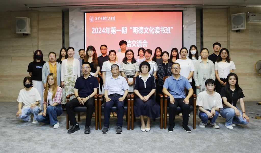 自“明德文化读书班”开班仪式后,2024年上半年,该读书班已连续组织开展“明德文化”主题读书活动六期。为进一步总结经验,拓展工作思路,提升明德文化育人工作实效,6月20日上午,学校在图书馆407会议室组织召开了2024年上半年“明德文化读书班”工作总结交流会。我校“明德文化”建设项目特聘教授孔润年、马克思主义学院副院长惠斌、图书馆馆长王爱霞、智能制造与控制技术学院党委书记陈雪彬、读书班指导老师及学生代表们参加了会议。会议由图书馆馆长王爱霞主持。