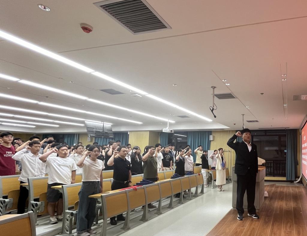 为做好毕业生党员教育,把好党员“出口关”,使毕业生党员时刻牢记党员身份,坚定理想信念,强化责任担当,6月24日,经济与管理学院在7号教学楼501开展2024届毕业生党员教育暨“最后一课”活动。学院党委书记何文举、副书记冯纪潮、各学生党支部书记、2024届毕业生党员共计200余人参加活动。活动由学生第五党支部书记邹代柳主持。
