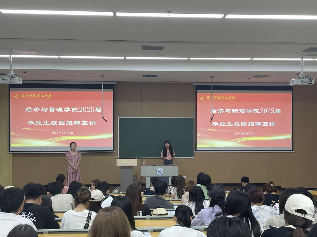 此次宣讲会的举办,不仅为2025届毕业生提供了实习机会,也为毕业生开展了一次就业指导,推动了校企合作的深入开展。经济与管理学院将继续开展就业育人系列主题教育活动,搭建校企精准对接供需平台,加强与企业的合作交流,共同做好2025届毕业生就业工作。
