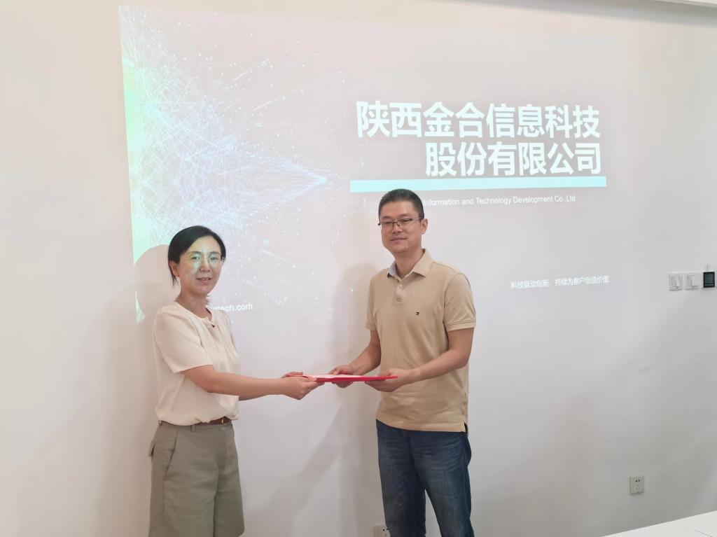7月9日,信息工程学院执行院长翟书颖教授带队,办公室主任尹莹、专业负责人马蕾、专业骨干教师陈世亮及多位专业教师赴陕西金合信息科技股份有限公司开展校企合作洽谈,并举行企业导师聘任仪式。陕西金合信息科技股份有限公司董事长张文泉携软件研发部部长杨康、行政部负责人王莉莉热情接待了学院一行。