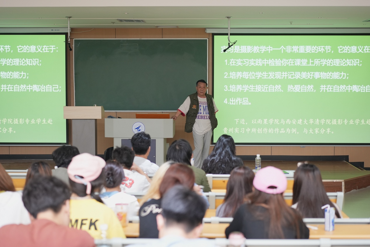 讲座上,柏雨果教授结合多年贵州相关影像实例为学生细致讲解了摄影采风创作、旅途影像创作、人文考察的方法、经验,收获与教训,为学生开展实地影像考察夯实基础,鼓足信心。