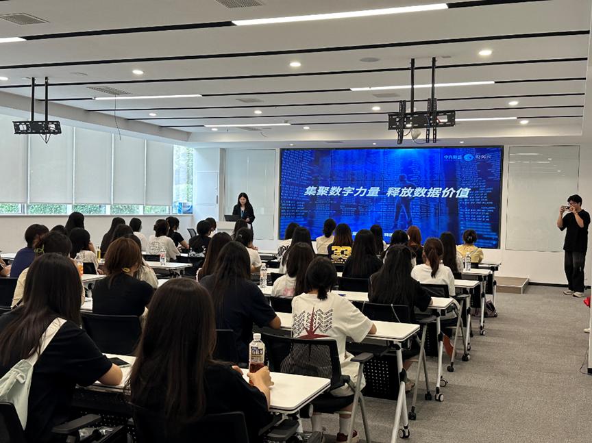 在中兴新云财务共享中心学习期间,师生们集中观看了企业宣传视频,先后参观了财务云展厅和数字财务中心,在财务云展厅,工作人员介绍了财务云发展历程、财务共享建设与运营管理,基于共享服务的财务云平台,包含费用报销、采购到付款、订单到收款的业财一体流程信息化,中兴新云研究成果及行业案例,师生们对中兴新云在网络安全和数据隐私保护方面的创新举措表示高度认可和赞叹。参访过程中,学生们通过近距离接触最前沿的财务云技术,深入了解智能财务的实际应用,感受了财会工作的魅力,拓宽了专业视野。