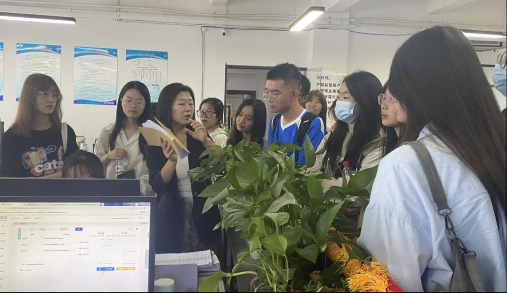 在郝亚茹和万楠老师的带领下,学生们分成若干小组,参观了企业的各项日常业务活动,包括票据整理、税务筹划、财务管理、报表出具等业务。在观摩过程中,学生们在课堂上学习到的知识得以应用,对自己的专业发展方向有了更加明确的认知。