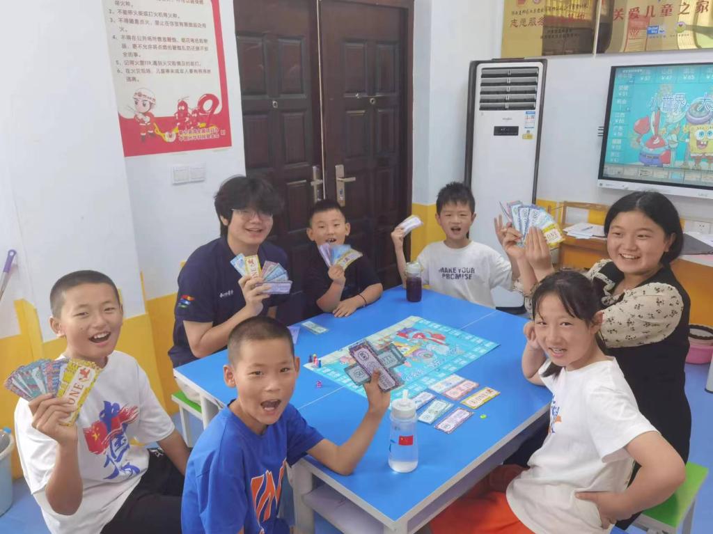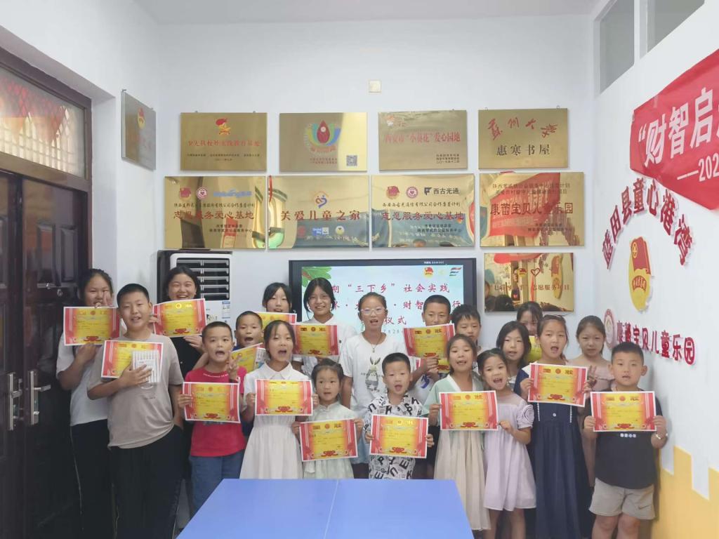 7月28日,华体会(中国)“小世界∙大梦想∙财智少年行”三下乡暑期社会实践队赴陕西省蓝田县普华镇童心港湾举行的少儿财商训练营圆满结束。