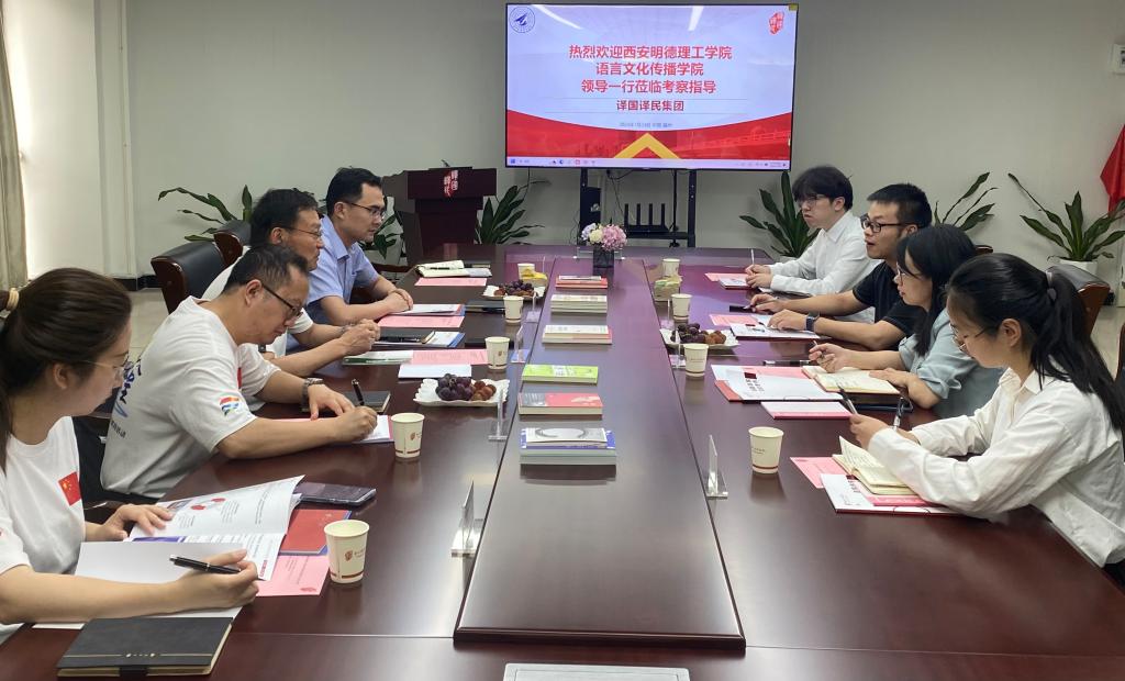 7月24日,学院一行走访福州译国译民集团有限公司,在副董事长雷良琼、西安分公司总经理吴强的陪同下参观了公司,感受了企业文化氛围。座谈会上,马庆林介绍了学院的学科设置、师资力量、科研成果及人才培养特色等情况。雷良琼介绍了公司发展历程、荣誉资质、主营业务以及招聘需求。双方就进一步加强校企合作、人才培养、实习实践、“双师型教师”培训等问题进行热烈讨论,深化合作意向。