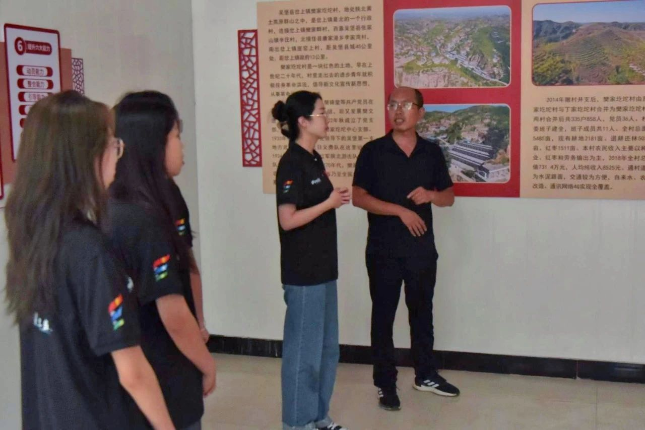 在樊家圪坨村,师生们参观了共青团史馆。在讲解员的带领下,师生们通过图片、实物和视频资料,深入了解了在党的领导下共青团波澜壮阔的发展历程,学生们通过一个个故事重温峥嵘岁月,汲取精神力量,体会到青年肩上的光荣感、责任感和使命感。樊家圪坨村村民自力更生、艰苦奋斗的精神也深深触动了实践队员,激发了他们投身社会实践、服务乡村建设的热情。