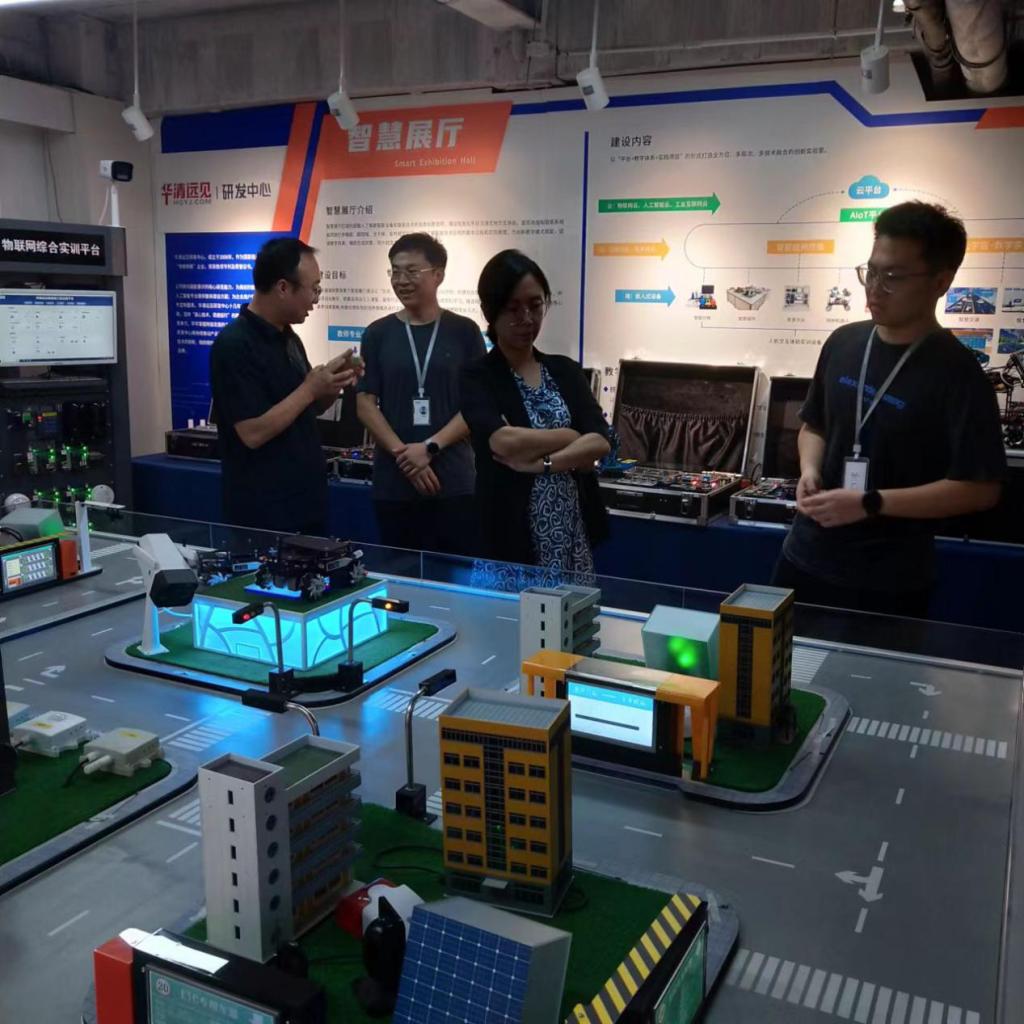 8月20日访问华清远见集团。集团副总裁陶金华、研发中心经理赵松和研发中心区域主管边海东等参与活动并进行了现场交流。双方就夯实打造大学生校外实践教学基地,为学生提供华体会在线官网实习实践平台,促进复合型、创新型人才的培养等内容进行了热烈的研讨,并在教学资源共享、课程共建等多个领域进行了广泛深入的讨论。