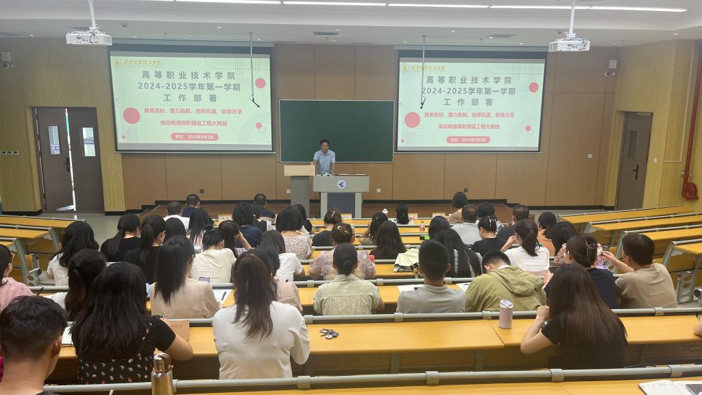 为全面规划新学期工作,明确发展目标,凝聚全院师生力量,高等职业技术学院于9月2日上午在7号教学楼101教室召开了2024-2025学年第一学期工作部署大会。学院领导班子成员及学院全体教职工参加了本次会议。会议由高等职业技术学院办公室主任陆鹤主持。
