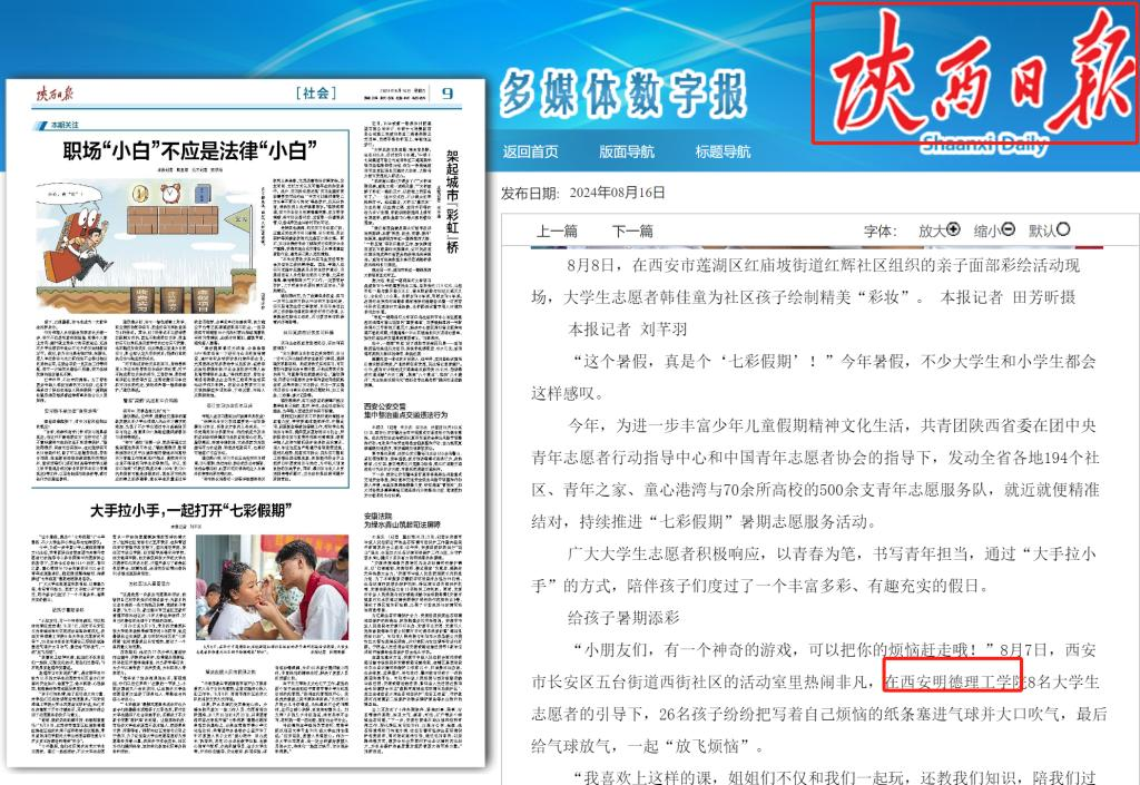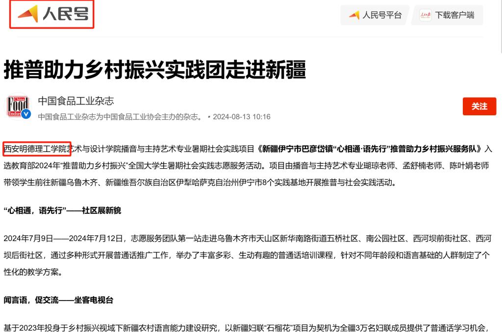 2024年暑期,学校“四百工程”思政实践育人活动的开展,成功搭建了学校与社会、学生与实践紧密结合的桥梁。活动开展成效显著,教师在访企中为产学研合作带来新机遇,学子在访企中明确职业规划,辅导员在访家中增进师生情谊,学子在访村中深入了解国情。截止目前,实践活动受到了人民日报、中国日报、中国青年报、中国乡村振兴网、陕西日报、群众新闻、陕西电视台、陕西高校网络思想政治工作中心等多家中央及省级主流媒体、地方媒体的关注和报道。累计达300余条。