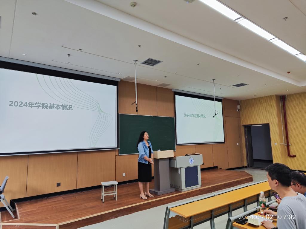 会议伊始,刘勇副院长首先对两个教研室2024年新进教师表示热烈的欢迎,接着从学院的办学思路、总体发展目标、学科专业建设、课程教学、师资队伍建设、人才培养目标、教师培养培训、实验室建设等方面对学院的办学情况进行了较详细的介绍。