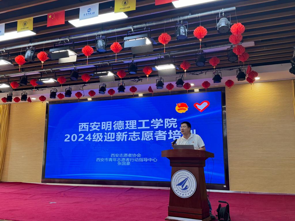 为更好地迎接2024级新生,提升迎新志愿者的服务水平和质量,学校团委于9月5日组织了一场别开生面的迎新志愿者培训会。共青团西安市委青志中心干部、西安志愿服务协会副秘书长张国豪,校团委副书记刘雄参加了培训会。