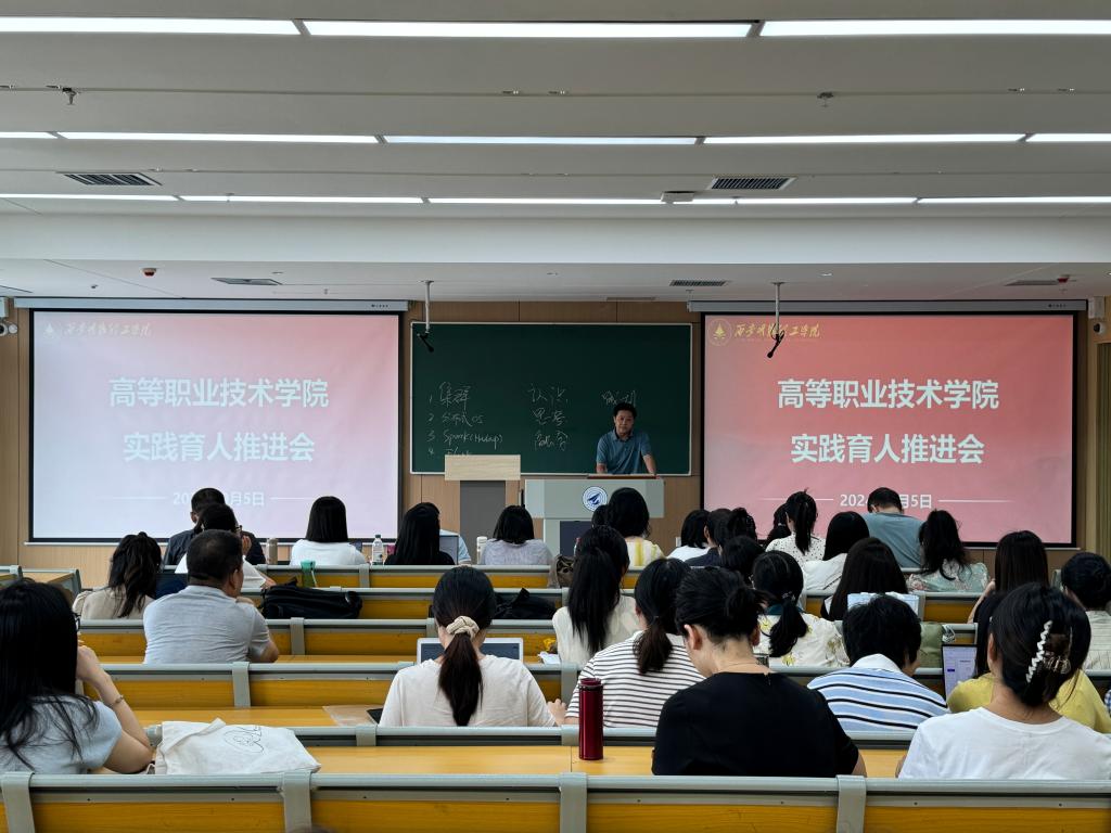 为进一步压实学生实习实践教学内容,总结先进经验,优化实践育人管理体系,高等职业技术学院于9月5日在7号教学楼501教室,召开了实践育人推进会。高等职业技术学院领导班子全体成员、各专业负责人、全体专职教师、相关辅导员和教学管理人员参加此次会议,会议由副院长于莉主持。