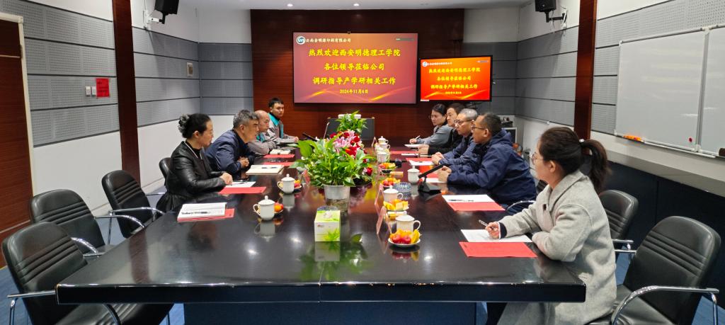朱延波副校长对企业方的热情接待表示感谢,从发展历史沿革、办学定位和特色、师资队伍建设、学科专业设置、招生就业、产教融合、科学研究、国际交流与合作、人才培养质量及取得的荣誉等方面介绍了学校概况,并说明本次来访目的。他表示,学校致力于为社会输送适应行业发展需求的高素质应用型人才,希望能与云南金明源印刷有限公司在人才培养和实践教学等方面展开深度合作,实现校企共赢。