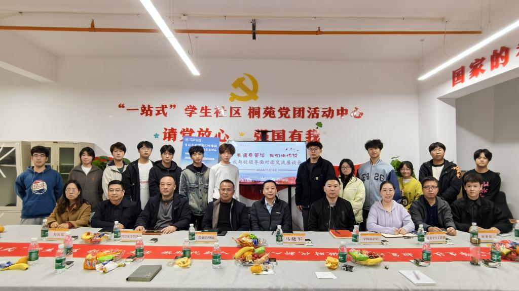 为进一步落实“我为同学办实事”相关要求,营造“倾听学生心声、关心学生成长、促进学校发展”的良好氛围,充分发挥同学们在学校的民主管理和民主建设中的积极作用,维护同学们的合法权益。11月14日下午,学校在“一站式”学生社区-桐苑党团活动中心召开第六期“有话尽管说,我们听你说——我与校领导面对面”座谈会。