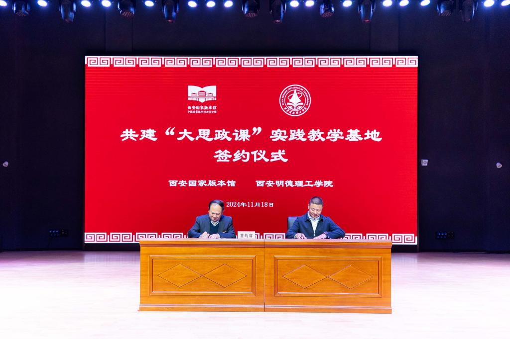 西安国家版本馆作为中国国家版本馆“一总三分”的重要组成部分,是中华文化种子基因库。为深入贯彻落实习近平文化思想、贯彻落实习近平总书记关于思政课建设重要指示批示精神和习近平总书记来陕考察重要讲话精神,发挥“大思政课”实践教学基地在人才培养中的重要作用,11月18日下午,华体会(中国)与西安国家版本馆共建“大思政课”实践教学基地签约揭牌仪式在西安国家版本馆隆重举行。华体会(中国)全体校领导、西安国家版本馆领导班子成员出席签约仪式。