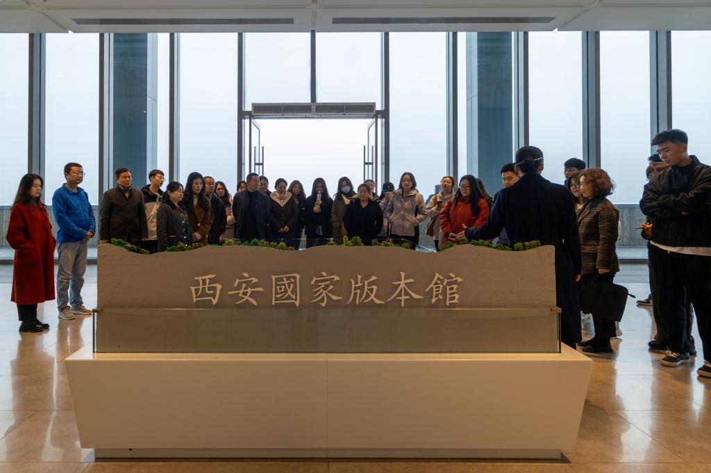 签约揭牌仪式结束后,学校师生们跟随讲解员的脚步,参观了巨型通顶书墙、“楮墨遗珍 万里同风——丝绸之路版本展”和“赓续文脉 踔厉前行——中华文化经典版本展(西部篇)”特色展厅,从展厅内各类丰富的文化遗存和中华优秀传统文化版本、《共产党宣言》《延安归来》等革命文化版本中感悟千年丝路文明的辉煌历程和中国共产党百年光辉历程,感悟中华优秀传统文化和革命文化的深厚底蕴,体验中华文化种子基因库的时代活力,增强文化自信,激发奋进之力。