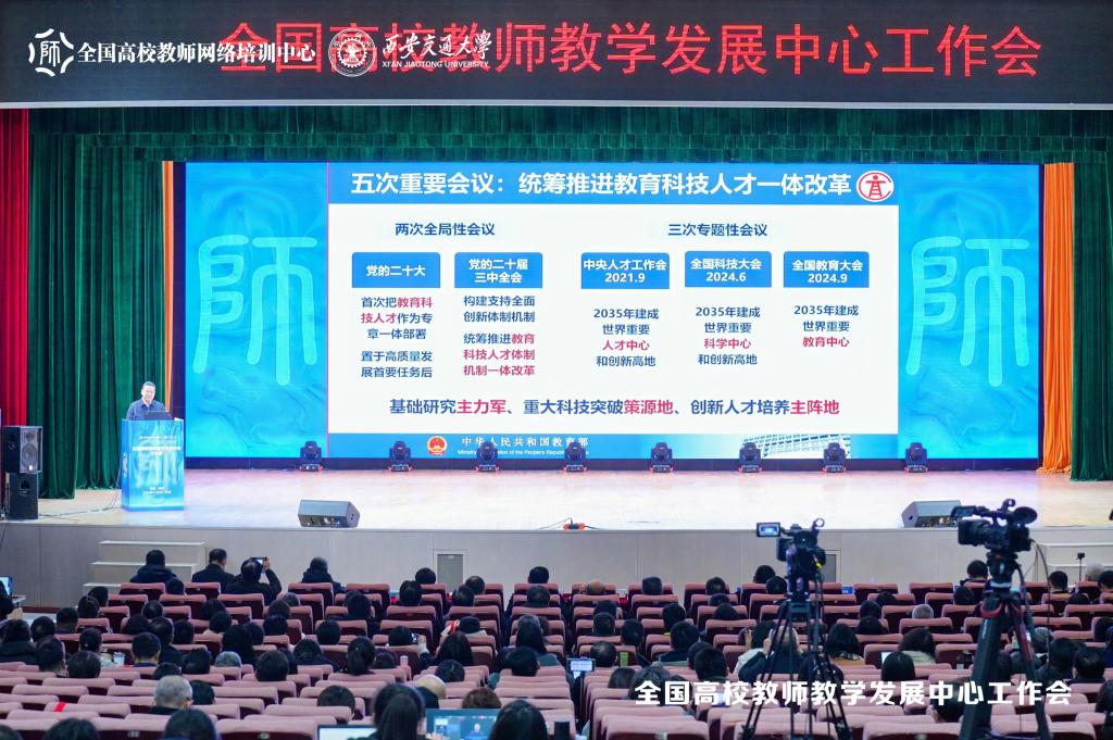 为深入学习贯彻落实党的二十届三中全会精神和全国教育大会精神,加快推进人工智能赋能教师教学发展工作,提高人才自主培养质量,2024年11月28—30日,由教育部高等教育司指导、全国高校教师网络培训中心主办、西安交通大学承办的2024年全国高校教师教学发展中心工作会在西安召开。来自各省(区、市)教育行政部门的有关负责同志、400余所高校的校领导、教师教学发展部门负责人和专家学者等800余人参会。我校党委副书记、副校长、纪委书记白秦川同教师发展中心等一行4人前往参加。
