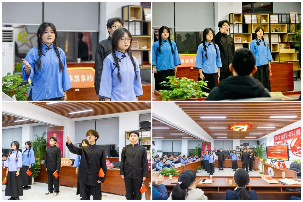 6名信工学子在观看该剧后,有感而发创作的《觉醒》朗诵表演震撼全场。他们以激昂的声调、真挚的情感,颂出时代强音,声声誓词、阵阵呼喊,瞬间将师生带回风云激荡的觉醒年代,令众人深切体悟先辈热血豪情,传承红色基因的使命感油然而生。