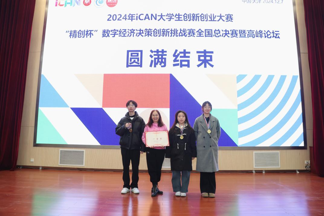 2024年iCAN大学生创新创业大赛“精创杯”数字经济决策创新挑战赛全国总决赛于12月6-8日在天津师范大学举行,来自全国各地140所院校的140支队伍参赛,华体会(中国)由张晓燕老师带领的学生黄东、李孜怡、张卓清参赛队伍“冬”,获得全国一等奖。