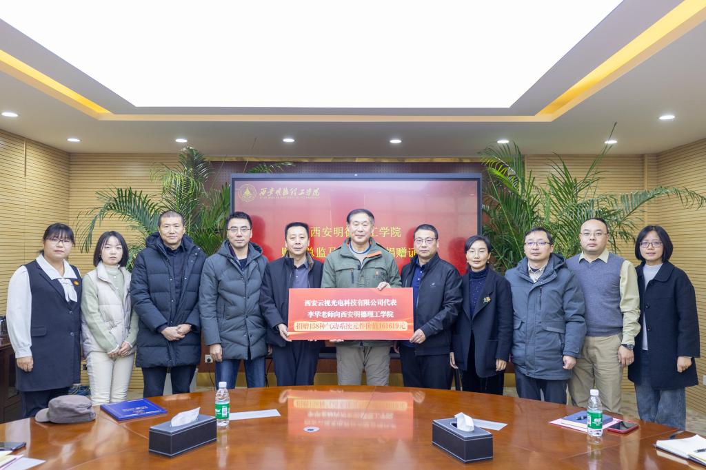12月25日上午,西安云视光电科技有限公司教学仪器设备捐赠仪式在明志楼517会议室隆重举行。学校副校长朱延波,财务总监马晓军、西安云视光电科技有限公司代表李华高级工程师、智能制造与控制技术学院全体班子成员、校企合作管理中心副主任崔岩、资产管理处张少芳出席捐赠仪式。仪式由智能制造与控制技术学院院长殷锐主持。