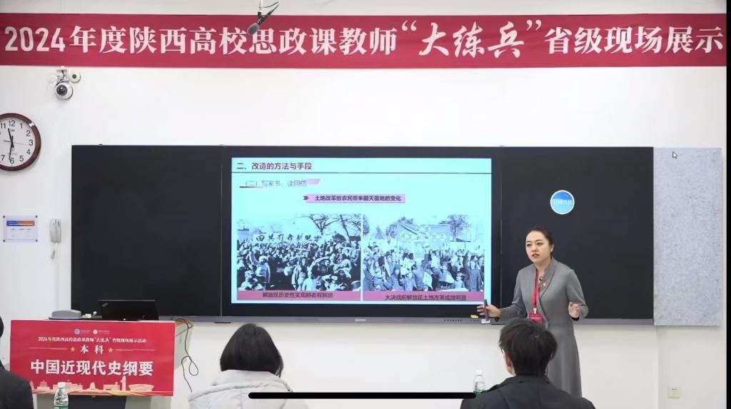 2024年陕西高校思政课教师“大练兵”活动启动以来,学校领导高度重视、周密部署,有关职能部门密切协作,把抓好“大练兵”活动作为我校推进思想政治理论课改革创新的重要抓手。马克思主义学院积极动员、全员参与,扎实开展参赛选手培训、选拔、打磨等系列工作,邀请省内知名专家从课程选题、教学设计、教学内容、教学课件等多方面给予参赛教师精准培训。经学校推荐、网络初评、现场展示、专家评审等环节取得优异成绩,充分展示了我校思政课教学水平和教师能力风采。