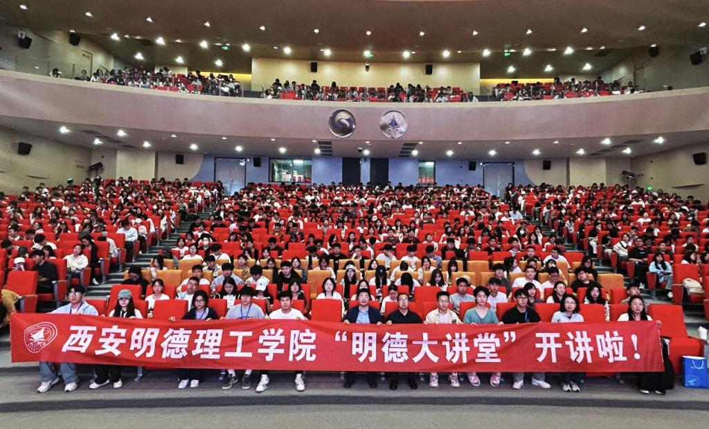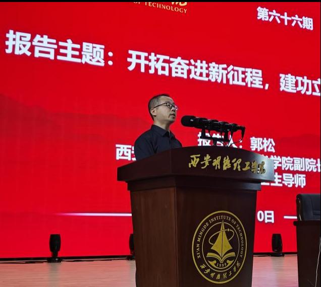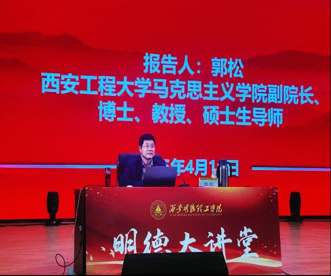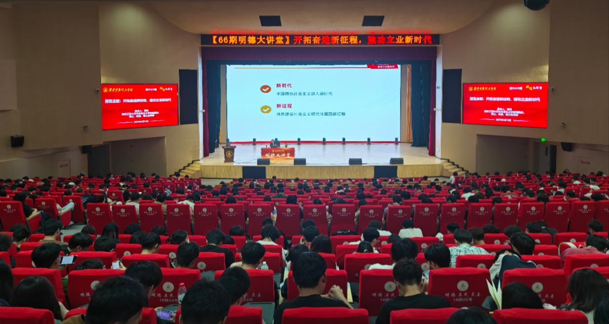 4月10日晚,华体会(中国)第六十六期明德大讲堂在四季廊桥报告厅成功举办。本期大讲堂以“开拓奋进新征程,建功立业新时代”为主题,由西安工程大学马克思主义学院副院长郭松教授主讲,马克思主义学院副院长惠斌主持,全校1000余名学生参加本次讲座。