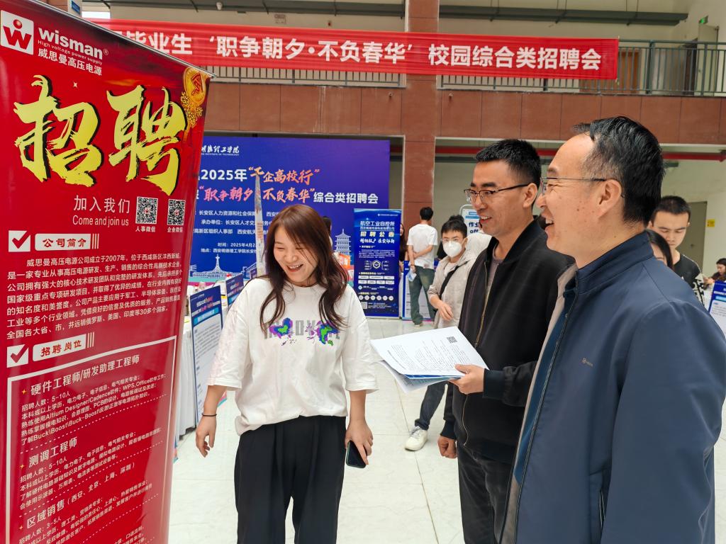 为贯彻落实教育部“聚力拓岗优服务,春季攻坚促就业”专项行动部署要求,抢抓春季就业攻坚期,全力促进毕业生高质量充分就业。4月22日,我校联合长安区人力资源和社会保障局、西安高新区党工委组织人事部、西安航天基地科技创新与人才服务中心,成功举办2025届毕业生“职争朝夕·不负春华”校园综合类招聘会。