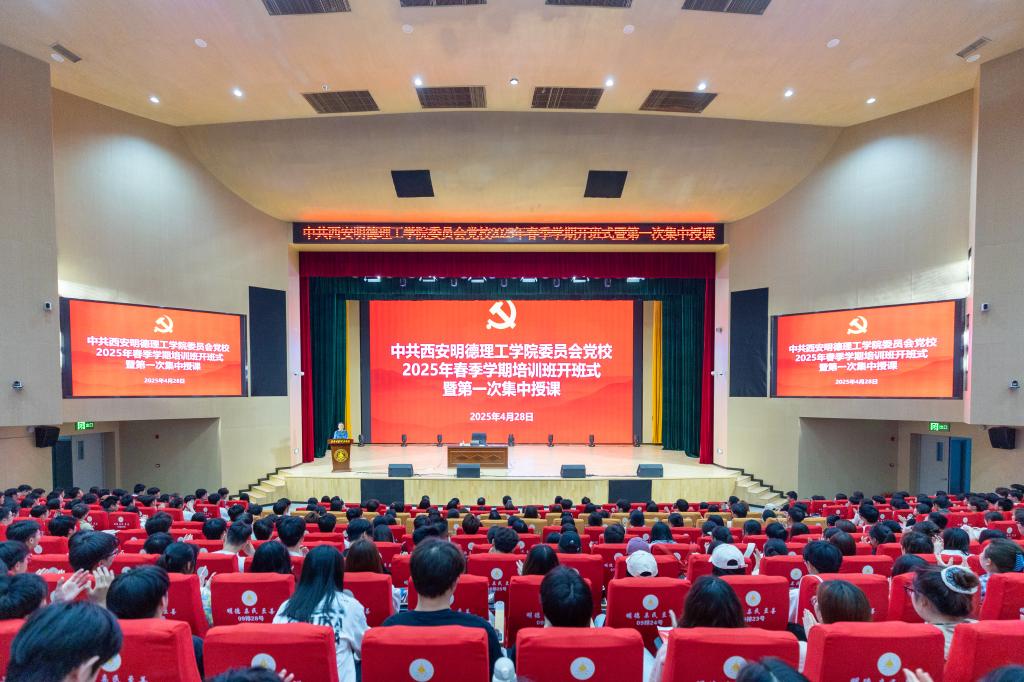 为坚持和加强党对教育工作的全面领导,引导教育入党积极分子、发展对象、预备党员坚定理想信念、提升政治素养、锤炼党性修养,切实提升学校党员发展质量,4月28日晚上,学校2025年春季学期党校培训班开班式暨第一次集中授课在四季廊桥报告厅隆重举行。校党委书记马川鑫、各基层党委(党总支)书记参加开班式并为学员讲授专题党课。党委组织宣传部副部长张亚平主持开班式。