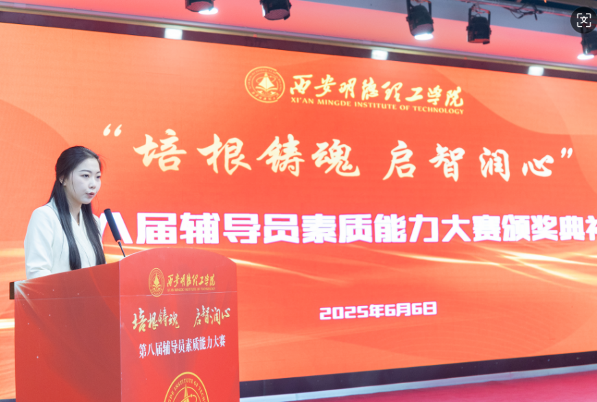 颁奖典礼上,党委学生工作部童杨梓作大赛总结,本届辅导员素质能力大赛的成功举办不仅是对我校辅导员队伍能力的一次全面检阅,更是推动我校思想政治教育工作迈向新高度的有力举措。大赛各环节设置清晰勾勒出了辅导员素质能力的“金字塔模型”。通过扎实的理论知识学习和备赛技能指导,在本次各环节比赛中,我校辅导员们充分展现了丰富的理论知识素养、敏锐的辩证观察能力、以学生为中心的共情能力以及育人铸魂的思想引领能力,彰显了我校辅导员队伍昂扬向上的精神风貌和卓越的职业技能。