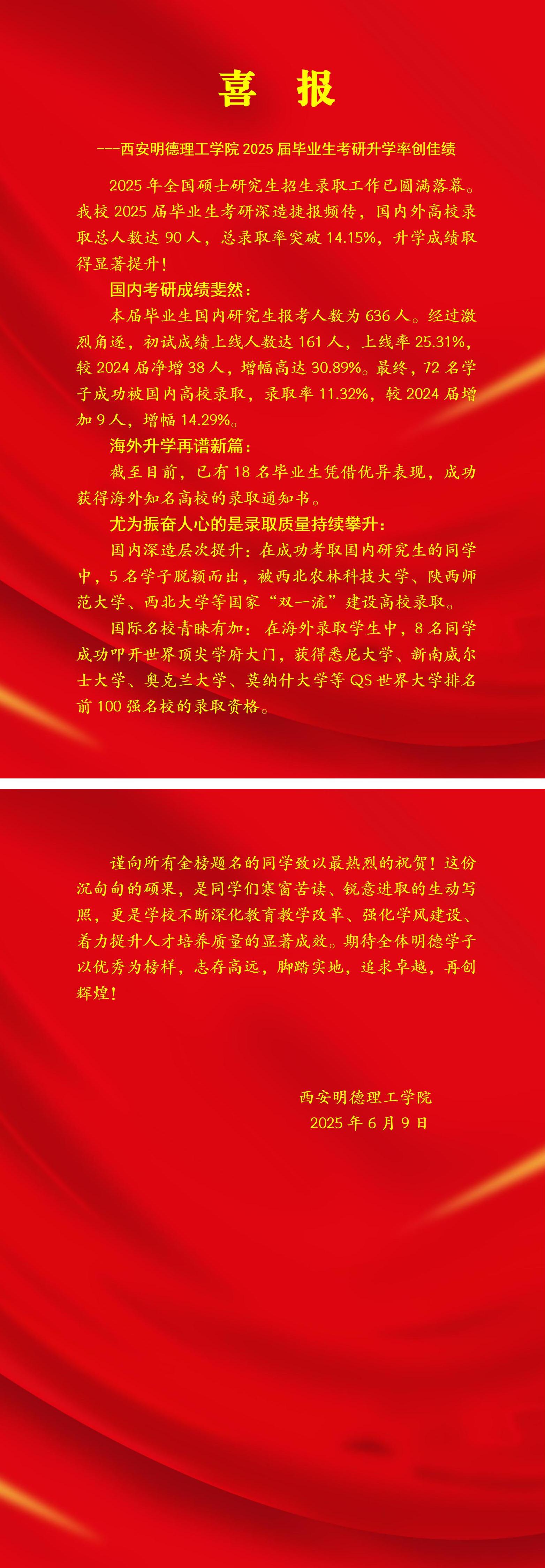 喜 报 ---华体会(中国)2025届毕业生考研升学率创佳绩