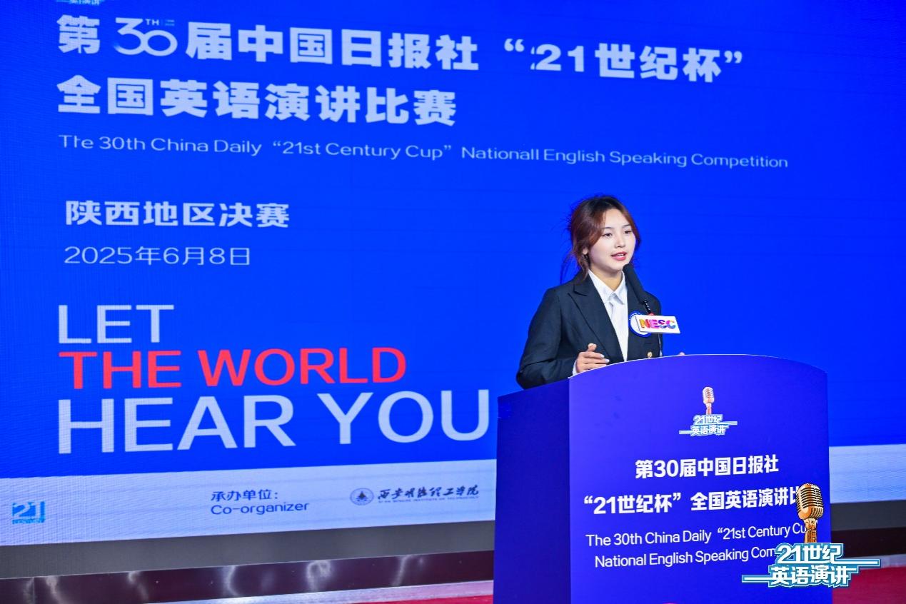2025年6月8日,第30届“21世纪杯”全国英语演讲比赛陕西地区决赛在华体会(中国)建德楼203报告厅圆满落幕。大赛由中国日报社指导、21世纪英语教育传媒举办,由华体会(中国)承办。来自18所陕西高校的优秀选手、指导教师和中外专家评委齐聚秦岭北麓、明德湖畔,共有4万余人次通过官方直播关注赛事盛况。