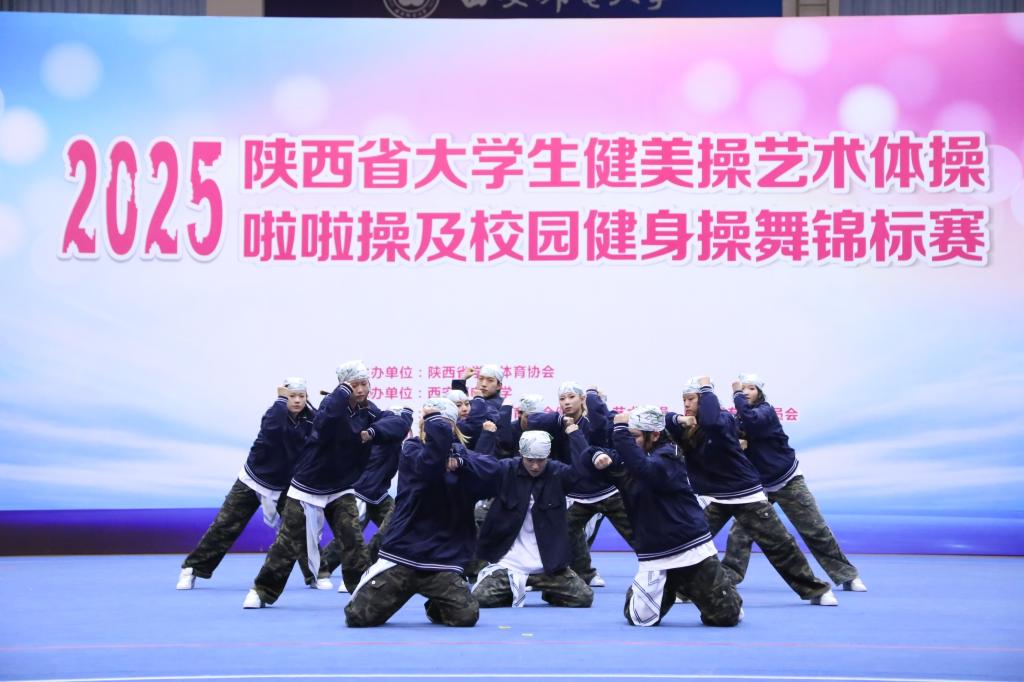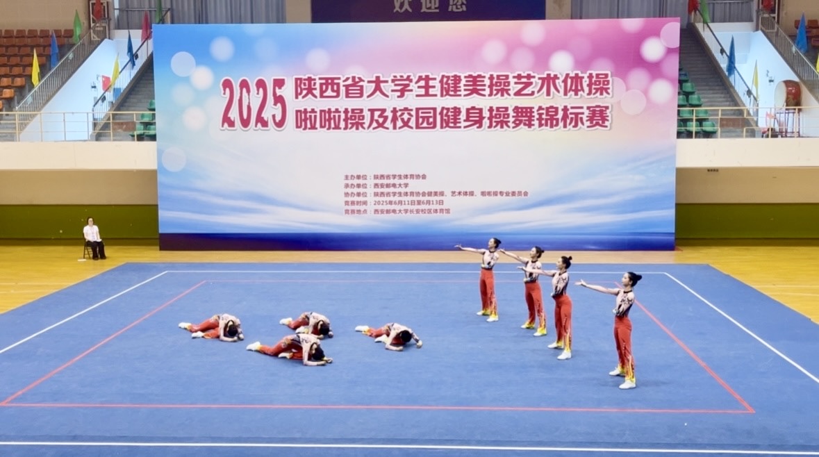 6月12日,2025年陕西省大学生健美操、艺术体操、啦啦操及校园健身操舞锦标赛在西安邮电大学长安校区圆满落幕。我校健美操队、街舞队在田荣、程绘泽两位教练的带领下,凭借出色的发挥和顽强的拼搏精神,在众多参赛队伍中脱颖而出,取得了甲组有氧舞蹈第二名、花球啦啦操自选动作第三名、街舞综合风格第三名、花球啦啦操规定动作第四名以及团体第八名的优异成绩。