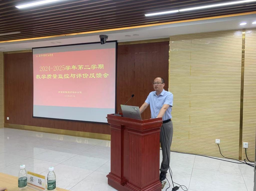 为加强质量文化建设,健全“三四五”内部质量保障体系,推进教学单位做好质量保障工作,6月18日下午,质量管理与评估办公室在明志楼南311会议室组织召开了2024-2025学年第二学期月度教学质量监控与评价反馈会。会议由质量与管理评估办公室主任张瑜主持,校长王志刚、副校长林东、各二级学院教学副院长、办公室主任、教研室主任、专业负责人、质量管理员、校院教学督导、教务处科级以上干部、质评办全体人员、党委学生工作部、教师发展中心等相关人员共计90余人参加了会议。