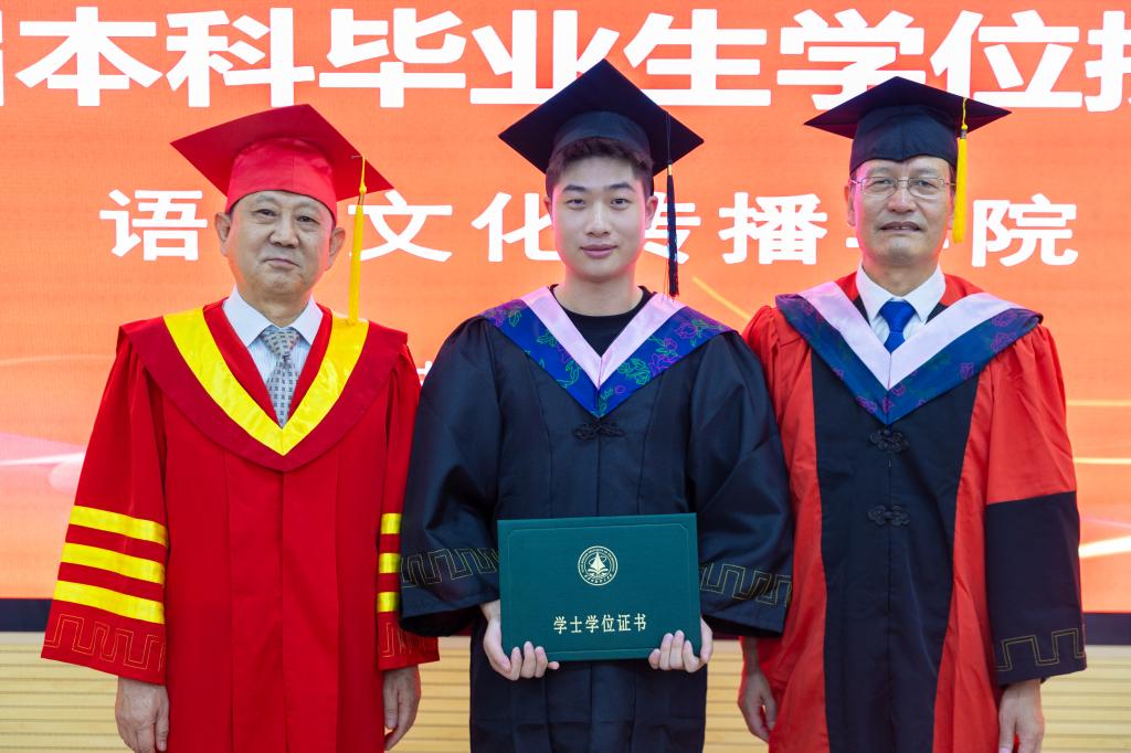 在师生的热烈掌声中,院长马庆林代表学院致辞,向全体毕业生表达了最热烈的祝贺和最真挚的祝福。他表示,寒来暑往、春华秋实,同学们在学院用热爱点燃梦想、用奋斗谱写青春华章,拨节孕穗、蜕变成长。在世界百年未有之大变局加速演进的时代背景下,语传学子要自信自立自强,树追求卓越之志。要在实现中华民族伟大复兴的征程中找准人生定位,以自信的姿态拥抱时代,以自强的精神开拓进取,以自立的担当勇毅前行。他希望语传学子们在这个伟大时代,肩负强国使命,牢记“明德、亲民、至善”校训,涵养胸怀、放大格局,勇担责任、锤炼能力,饮水思源、心怀感恩,在贡献社会中增长才干,在迎接挑战中磨砺意志。