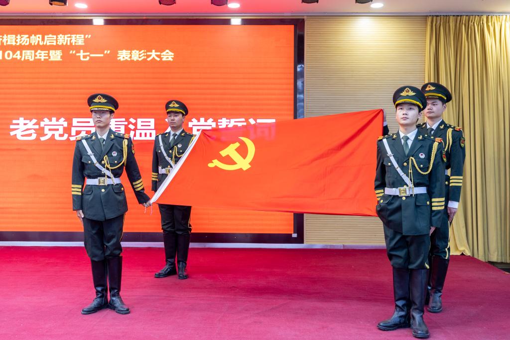 大会在庄严的国歌中拉开帷幕。党委组织宣传部副部长张亚平带领预备党员入党宣誓、老党员重温入党誓词。全体党员高举右拳,面向鲜红党旗庄严宣誓,铿锵誓言响彻会场,字字千钧,直击每位党员的心灵深处。