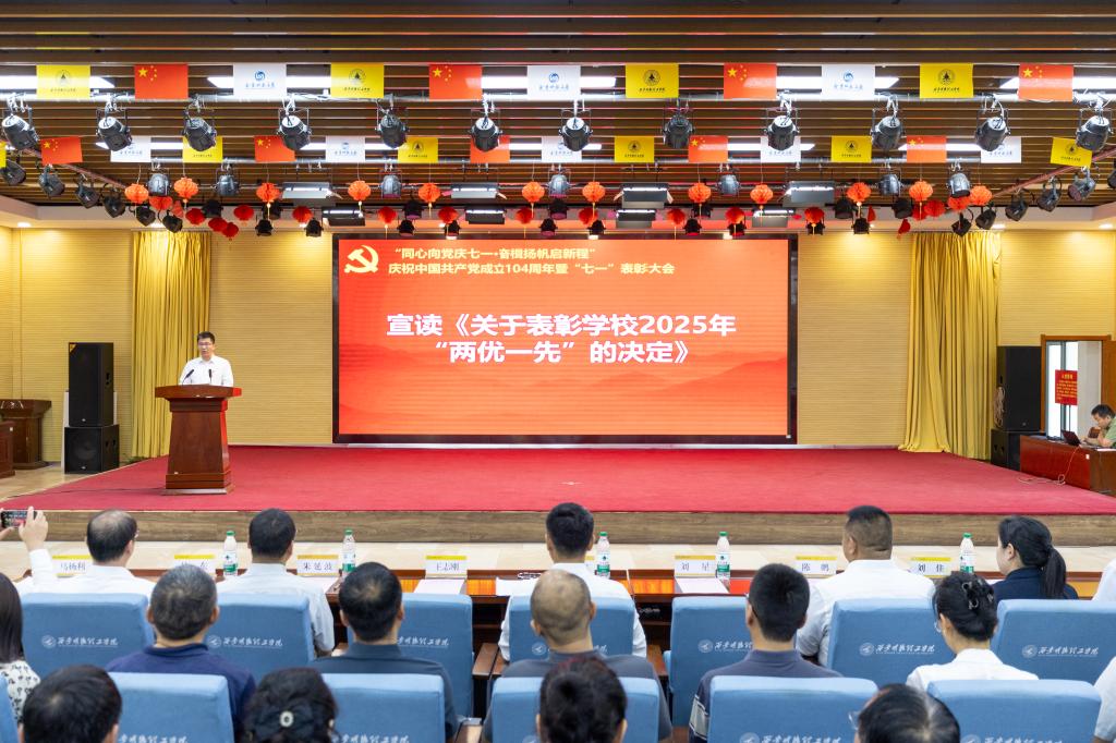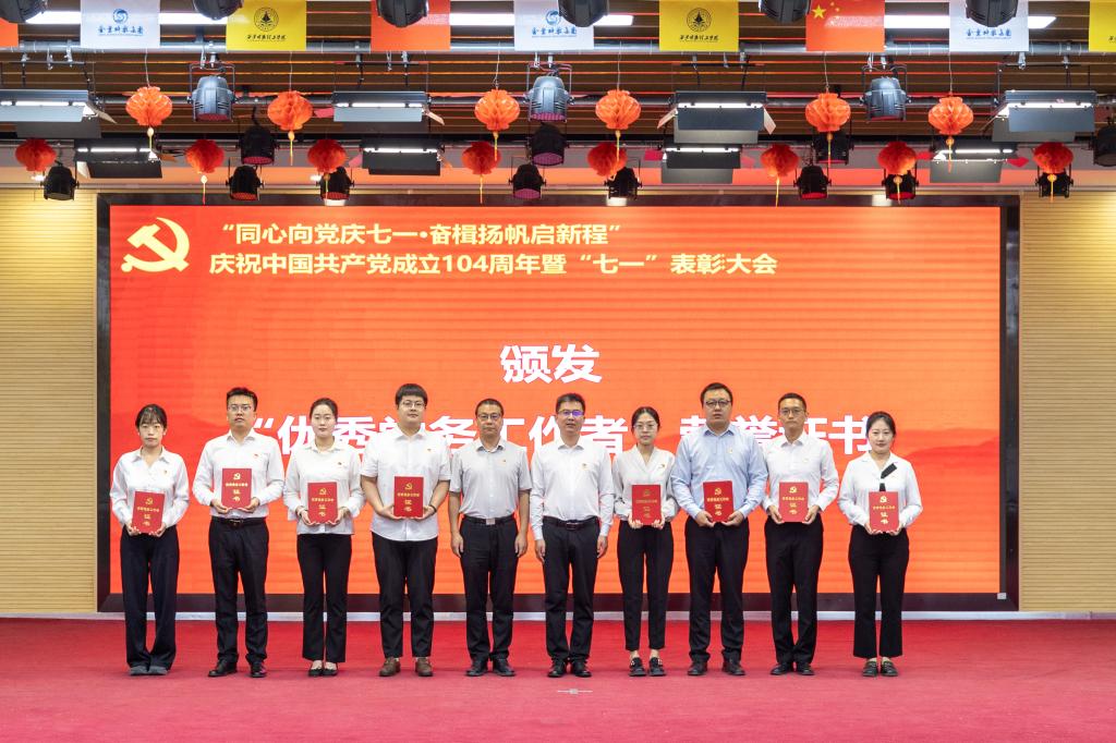 为扎实推进深入贯彻中央八项规定精神学习教育,弘扬伟大建党精神,同时表彰先进、树立典范,激励全校师生党员干部永葆初心、践行使命。7月1日上午,学校在建德楼203报告厅隆重举行“同心向党庆七一·奋楫扬帆启新程”庆祝中国共产党成立104周年暨“七一”表彰大会。全体校领导、校党委委员,处科级以上党员领导干部,各基层党组织书记,“两优一先”获奖人员,师生党员代表等300余人参加大会。会议由校党委副书记、校长王志刚主持。