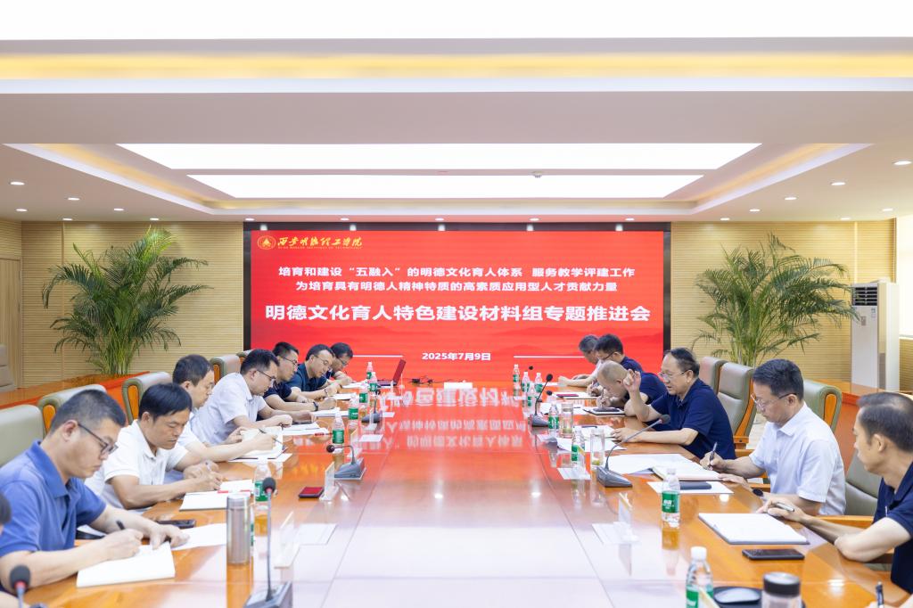 为进一步扎实推进明德文化育人特色建设工作,总结阶段性成果,为本科教学工作合格评估提供强有力支撑,7月9日上午,学校以“培育和建设‘五融入’的明德文化育人体系,服务合格评估,培养具有明德人精神特质的高素质应用型人才”为主题,召开明德文化育人特色建设材料组专题推进会。校长王志刚,相关职能部门、教辅单位负责人,各基层党委(党总支)书记参加会议。校党委书记马川鑫主持会议。