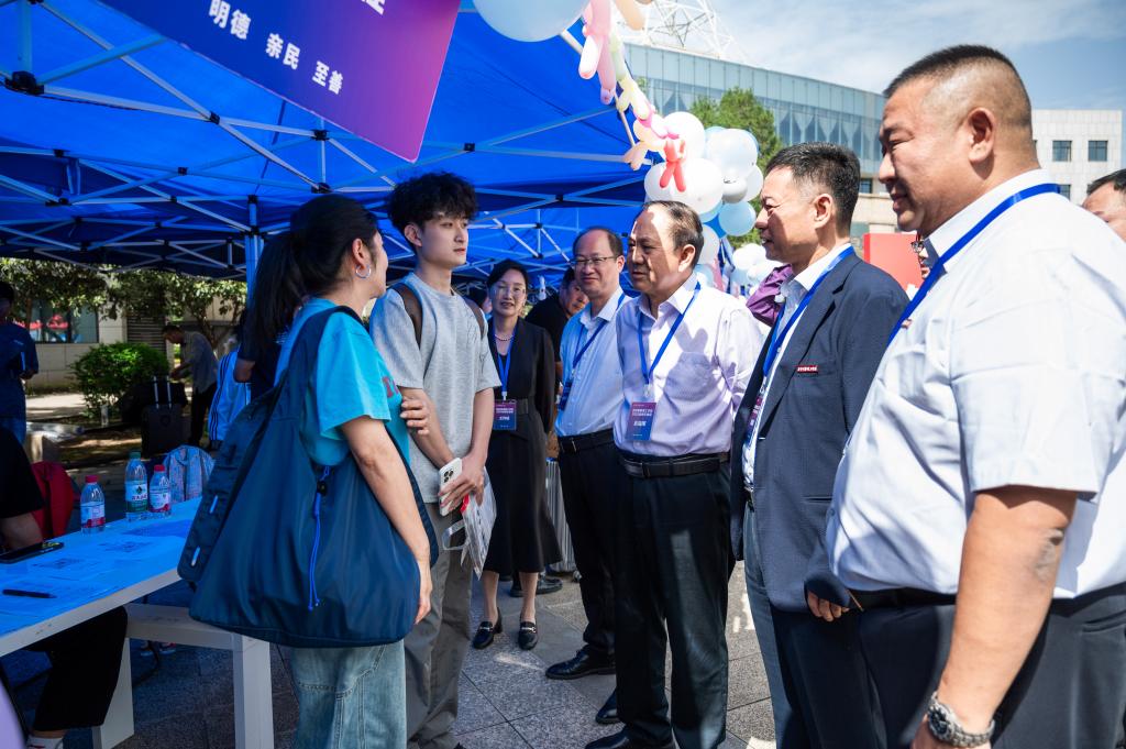 学校领导亲临学院迎新现场,亲切视察迎新工作开展情况。在学院智能科技展区,驻足观看智能机器人展示,仔细询问了机器人的功能开发与实际应用效果,对学院将智能科技融入迎新工作的创新做法给予高度肯定。他们强调,学院要持续以学生为中心,不断优化服务举措,为新生营造更便捷、更温馨的入学环境。同时,王志刚校长还与现场新生及家长亲切交谈,鼓励大家尽快适应大学生活,在探索中成长,在奋斗中绽放青春光彩。