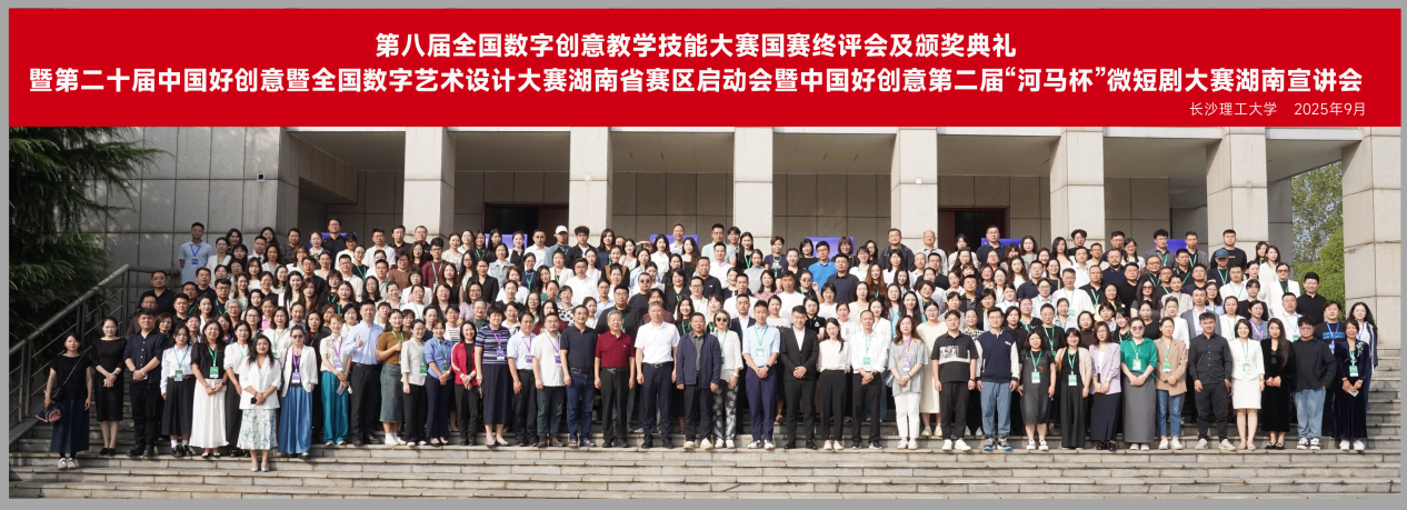 2025年9月28日,第八届全国数字创意教学技能大赛全国赛在长沙理工大学圆满落幕。艺术与设计学院4名教师凭借扎实的教学功底与创新的教学设计脱颖而出,在国赛695件作品中斩获佳绩——播音与主持艺术专业段卓文老师荣获一等奖,数字媒体艺术专业陈鹏宇老师获二等奖,数字媒体艺术专业梁毅、视觉传达设计专业王英花两位老师同获三等奖。