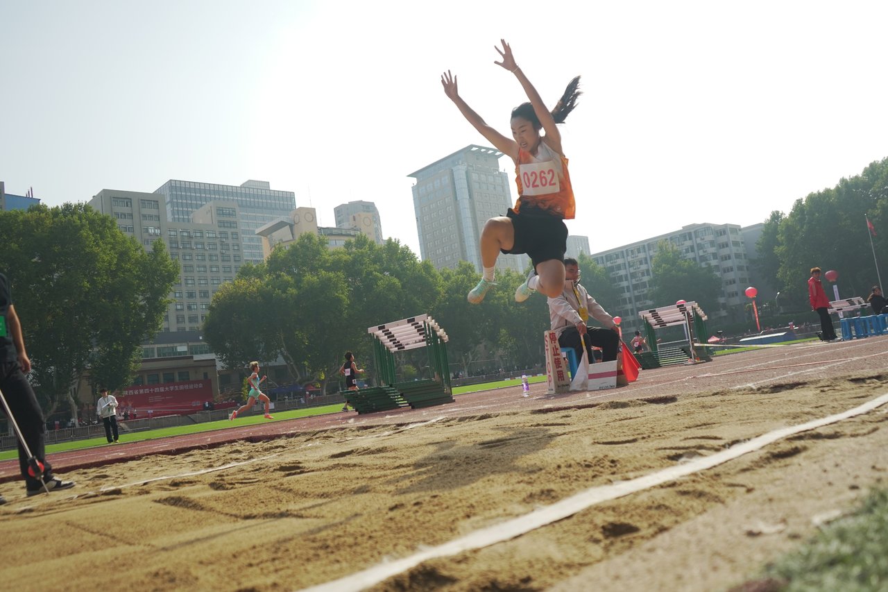在女子跳远的项目中,我校柳晨阳同学凭借对助跑节奏的精准把控与腾空落地的稳定表现,顶住竞争压力,成功摘得女子甲组跳远项目铜牌,沙坑中留下的每一道印记,都是她挑战极限的见证。