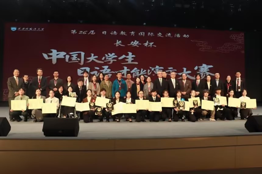 “长安杯”是国内日语教育领域极具影响力的赛事,大赛由西安外国语大学、日本NPO法人教育国际交流协会、中国国际贸易学会日语与国际商务专业教学研究会等单位共同主办。本次大赛共有来自全国15所高校的17名选手参加,分甲、乙两组。比赛分为写作和演讲两个环节,全面考察选手的语言应用与文化表达能力。该赛事受到中国教育国际交流协会、日本文部科学省、日本京都府、日本京都市、日本国际交流基金、京都外国语大学、东京外国语大学、国际教养大学、日本丽泽大学等单位大力支持。