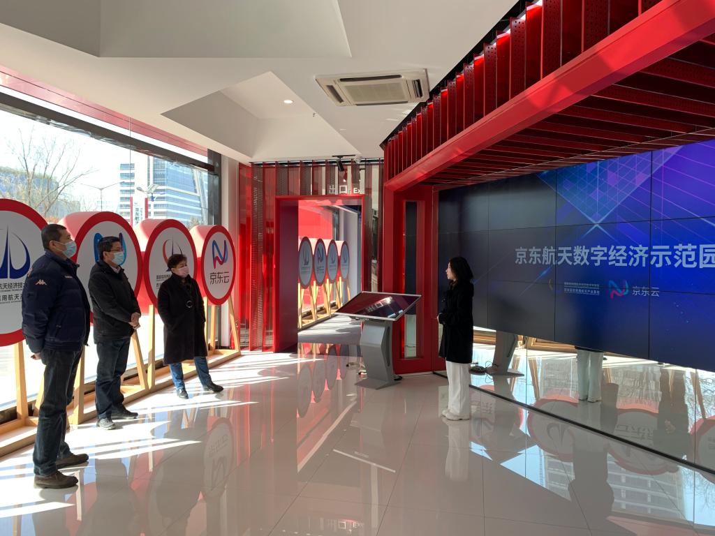 京东通过与西安航天基地的战略合作,启动建立了京东航天数字经济示范园,助力西安航天基地构建西安航天基地特色大数据产业生态体系。在负责人陪同下了解了示范园的运作模式和发展现状,观看园区宣传片,在展示区看到诸多陕西本地农副产品,充分发挥龙头带动作用,整合京东全生态资源,赋能当地产业,助力区域转型升级。