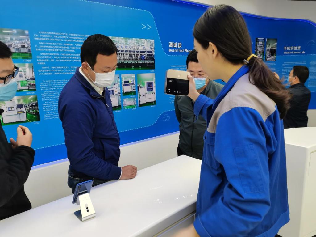 首先,考察人员一行在ZTE中兴工作人员带领下参观了企业展厅,详细了解了企业文化、业务范围、品牌影响、技术核心、生产规模以及相关实体产品,并参观了ZTE中兴前端、终端生产线。