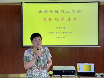 随后,庾鲜海副校长围绕明德学院的发展历史、发展现状以及未来发展目标做了专题报告。她首先和学员们分享了自己从读书、从教,再到从事高校管理工作的成长故事,鼓励大家要自信、担当、有格局,并能坚持信念,富有情怀,坚守教育阵地。另外,她从“怎样才是一个合格的教师”、“如何教好书”、“教学中的改革创新”等三个方面和学员们分享了她从教30余年的深刻认识和体会。最后,她向学员们详细介绍了明德学院从1999年创办,到2005年升本,再到2020年改制独立的办学发展历程,并着重介绍了学校在学科专业建设、师资队伍建设、校园建设、人才培养质量水平等方面取得的重大成果,以及围绕2024年全国本科合格水平评估工作所确立的未来发展方向和目标。