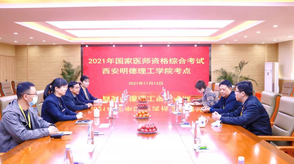 考试期间,陕西省卫生健康委胡俊鸿处长来我校巡考,杨健君校长全程陪同。陕西省卫生健康委、西安市卫生健康委、长安区高校协调办、长安区滦镇派出所、西安市第九医院等部门委派工作人员驻扎考点,合力确保考点考务及疫情防控工作顺利开展。