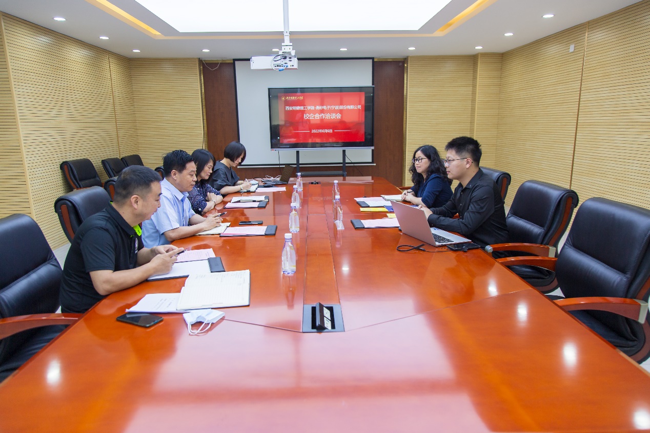 为贯彻教育部和陕西省教育厅访企拓岗促就业专项行动,落实访企拓岗“走出去,请进来”工作思路,6月6日,我校高等职业技术学院邀请甬矽电子(宁波)股份有限公司来校交流洽谈校企合作相关事宜。洽谈会在明志楼南207会议室举行,甬矽电子(宁波)股份有限公司人事主管沈佳栋、校园招聘负责人徐方、学校招生就业中心副主任王东辉、高等职业技术学院相关领导参加,会议由高等职业技术学院副院长王庭良主持。
